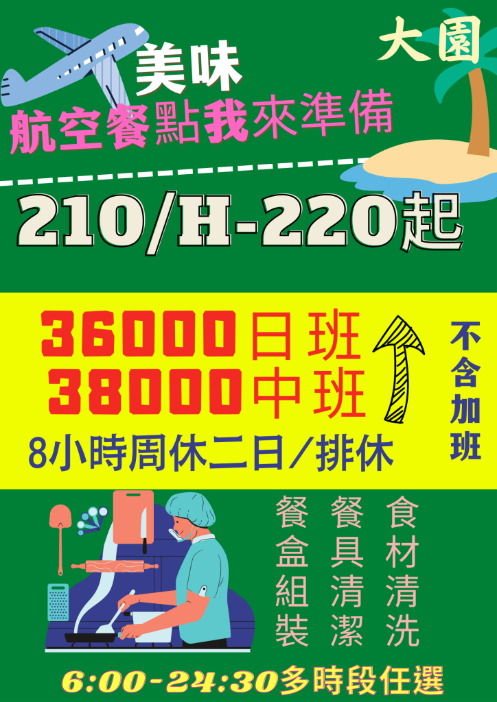 ✅工作地點:大園區航勤北路